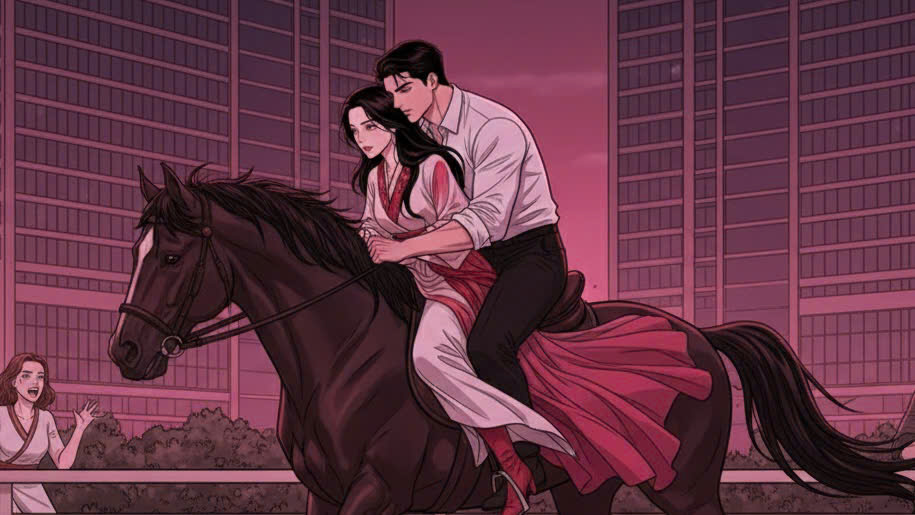 Bàn tay to lớn của anh vòng qua eo cô và nắm lấy dây cương, ép sát tấm lưng mảnh mai của Valentina vào lồng ngực vững chãi của mình.